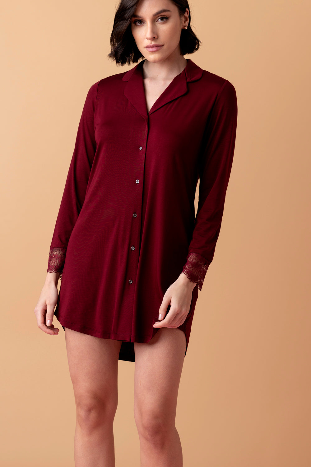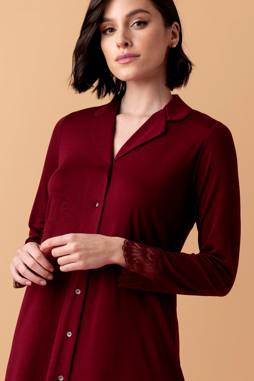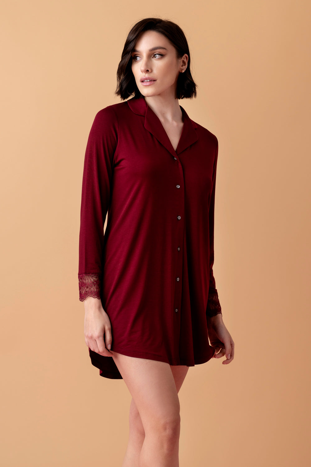 Poem – Kurzes Nachthemd mit Knopfleiste – Rotwein