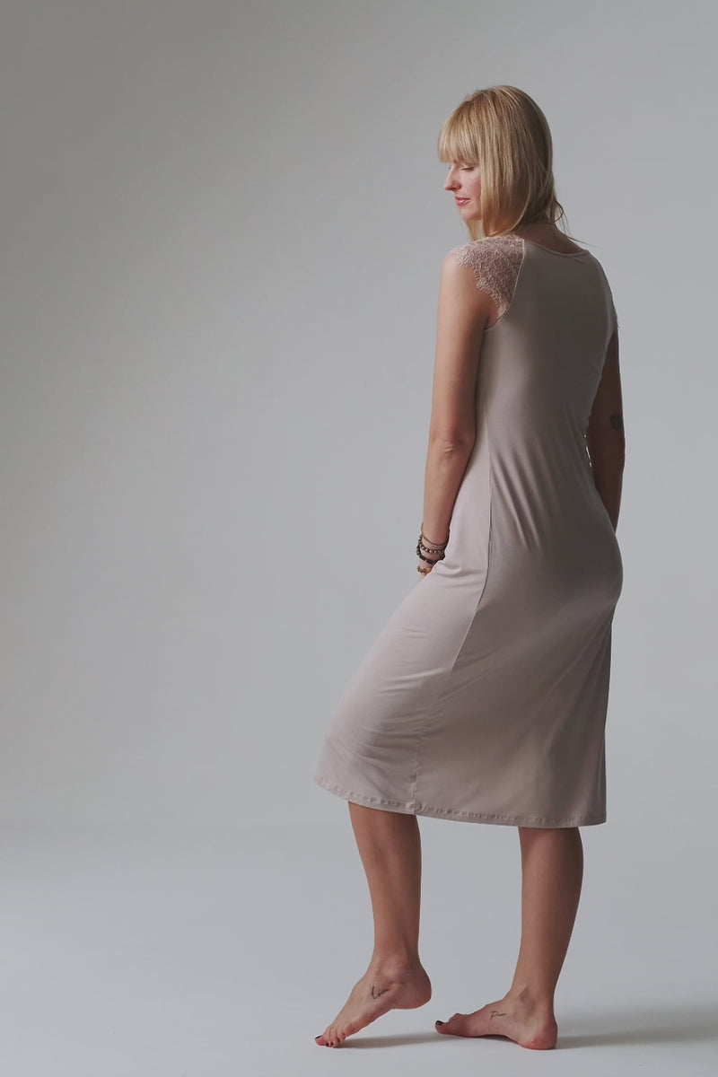 Aurora – Midi Nightgown with Lace Sleeves – Almond Milk