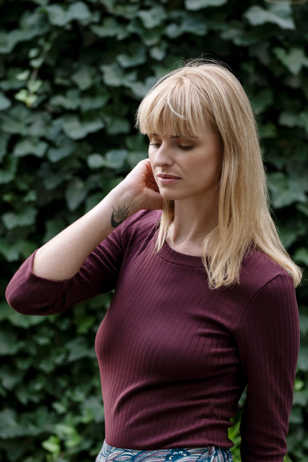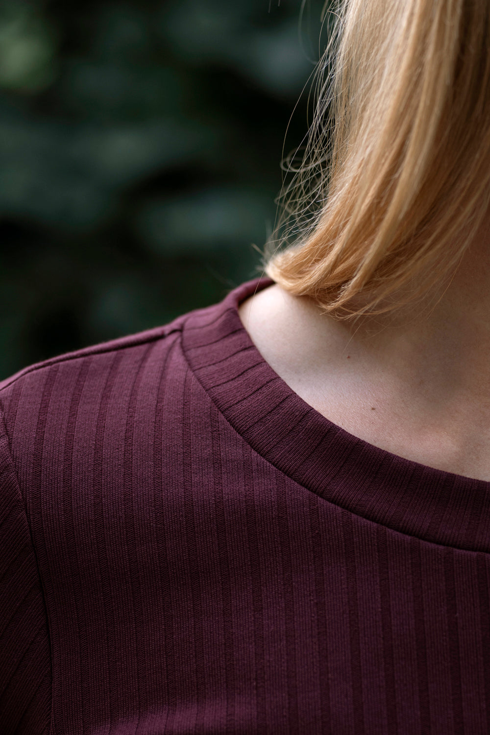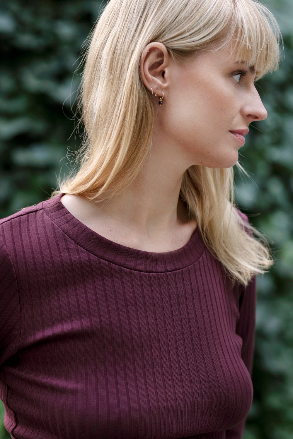 Echo – 3/4 sleeve ribbed cotton blouse – burgundy